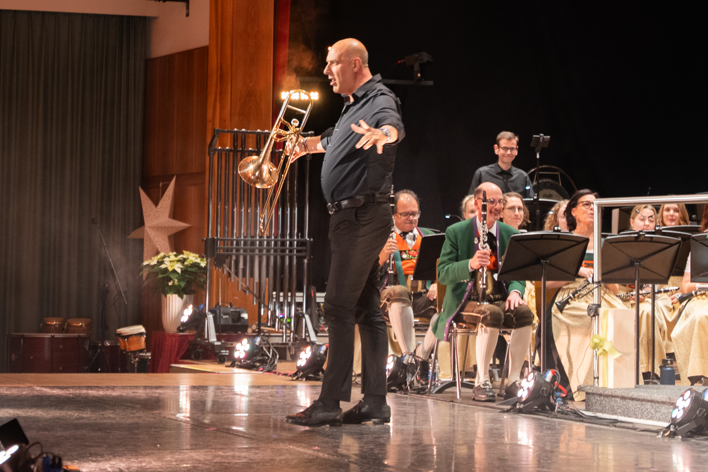 KRÖNENDER ABSCHLUSS. Als krönender Abschluss folgte irisch-keltische Musik. Dies bot auch die Möglichkeit, einige Solisten in der Landecker Kapelle zu präsentieren: Andreas Zangerl am Sopransaxofon, Franz Huber jun. am Horn und Jana Deutschmann am Hackbrett. Brausenden Applaus erntete die Schlagwerkgruppe mit ihrer Trommelshow. Und wenn eine Show „The Best of Lord of the Dance – Riverdance“ heißt, dürfen Tänzer nicht fehlen. Die „Irish Dance Company Austria“ bot eine grandiose Bühnenshow, man wähnte sich in einem irischen Pub, obschon die sieben Tänzer aus Niederösterreich und Wien stammten. Das perfekte Ende bot der Star-Posaunist Lito Fontana gemeinsam mit der MK Landeck mit dem Stück „Bolivar“. Fontana ist dem Landecker Publikum schon bestens bekannt. Als Musikfan möchte man den Wunsch äußern: Bitte weiter so!